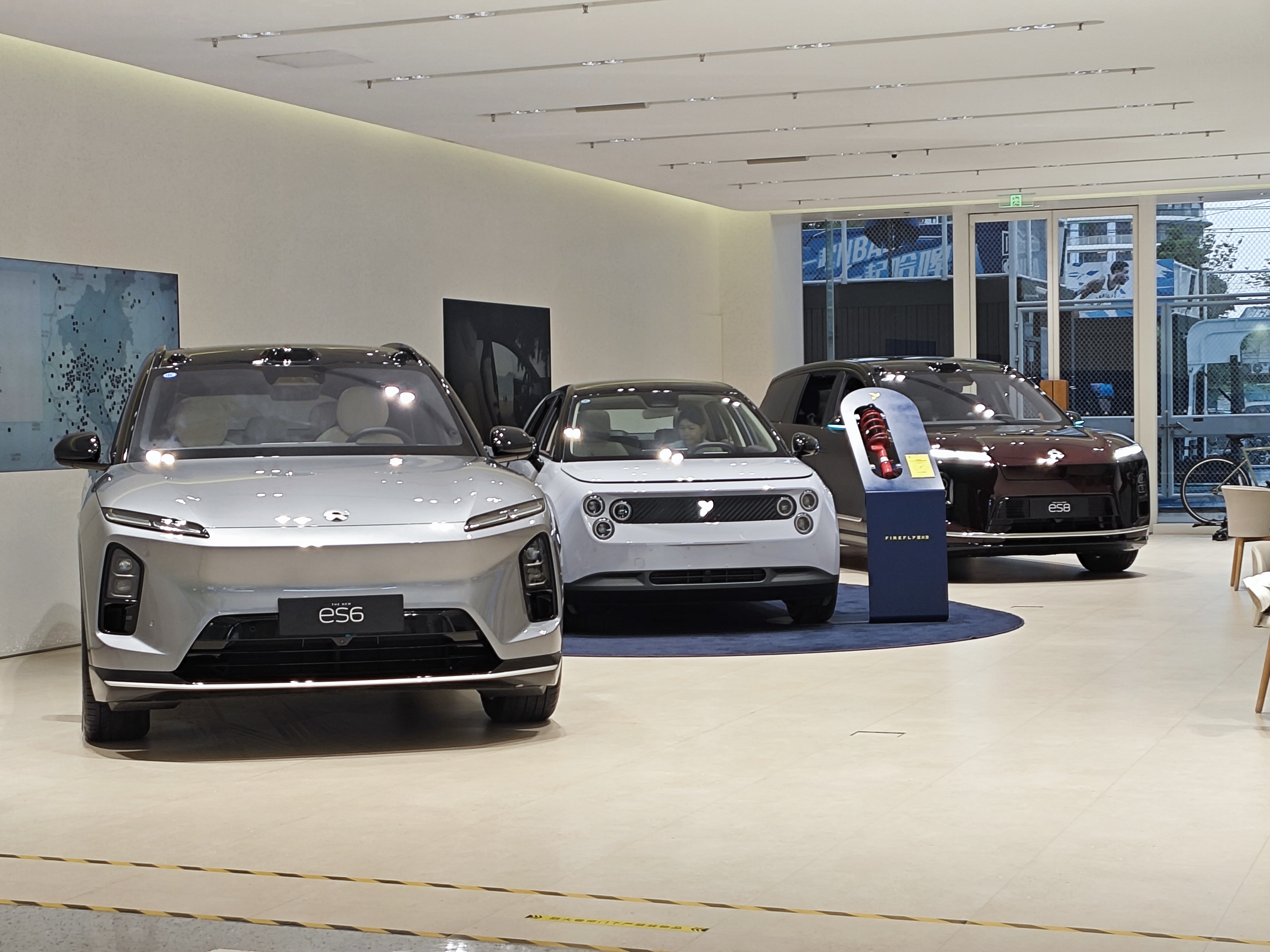相邻的蔚来门店,虽然客流量与理想半斤八两,但也不乏亮点。