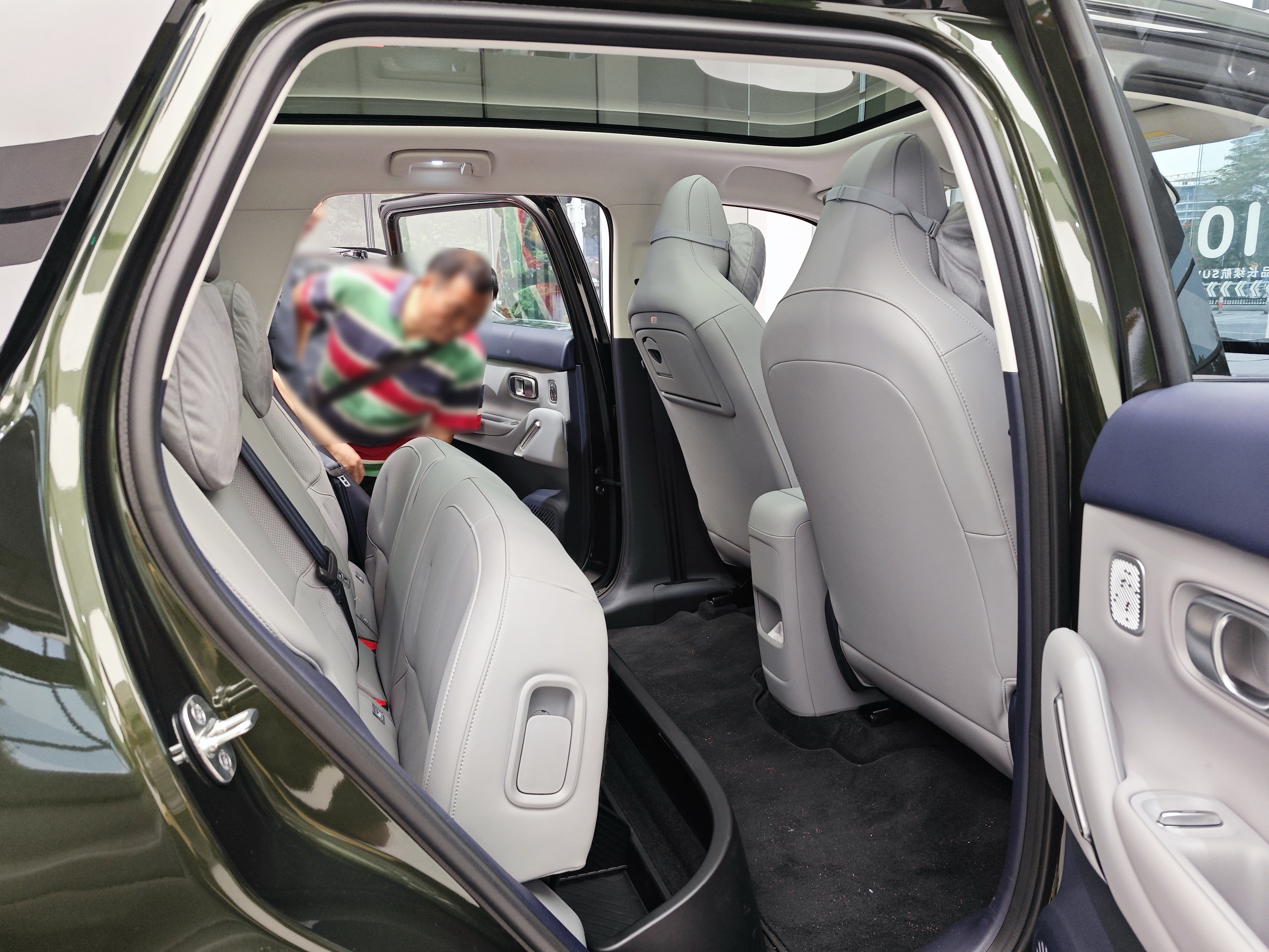 现场看车的老哥非常认可这款车的空间储物能力,打开第二排座椅后,嘴里念叨着这里放一些不常用的配置,确实够用。销售顺势介绍起后备箱的下沉空间、激光雷达等其他亮点,老哥听完之后直接去试驾。